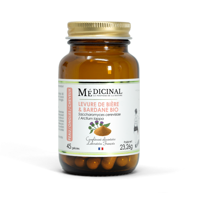 Beauté de la peau, des cheveux et des ongles. Levure de bière et extrait de racines de Bardane BIO.