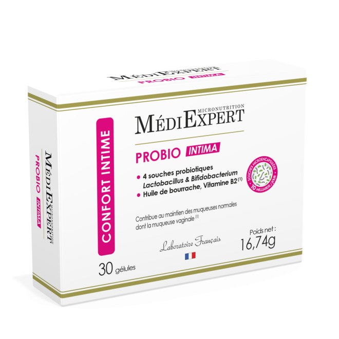 Pour la muqueuse vaginale. À base de souches probiotiques de haute qualité, micro-encaspulées.