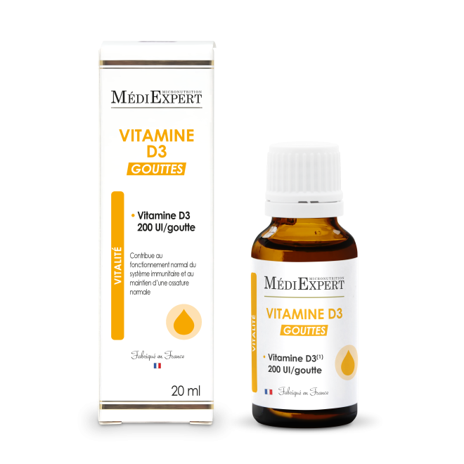Pour le système immunitaire et l'ossature. Format gouttes 200 UI/goutte.