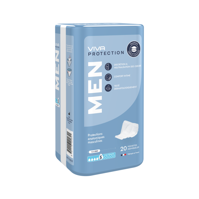 En cas de fuites urinaires légères. Adapté aux hommes.
