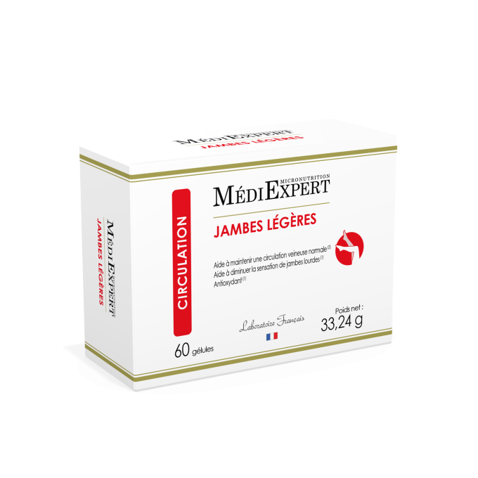 Médiexpert Jambes légères est un complément alimentaire pour aider à diminuer les sensations de jambes lourdes. Une formule complète associant 7 actifs ciblés : diosmine, hespéridine, 4 extraits végétaux reconnus et de la vitamine C :