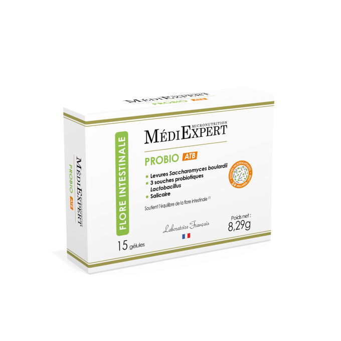Probio ATB est un complément alimentaire qui soutient l'équilibre du microbiote intestinal sur des périodes courtes en cas de nécessité. Sa formule concentrée associe 24 milliards de souches probiotiques1 rigoureusement sélectionnées, dont les levures Saccharomyces Boulardii, à la Salicaire.