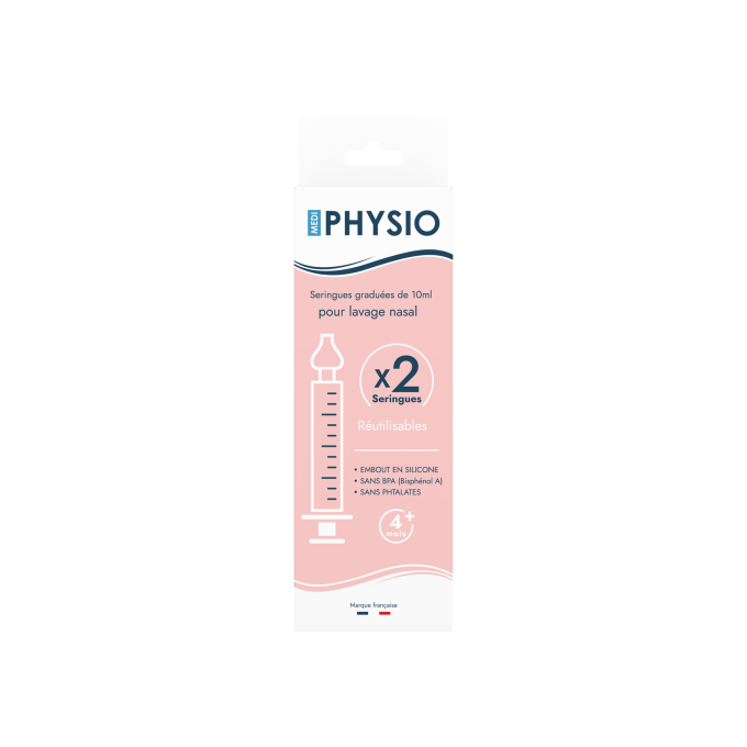 Les seringues pour lavage nasal Mediphysio sont des dispositifs médicaux de classe I, à utiliser avec du sérum physiologique.