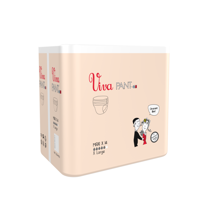 VIVA Protection PANT existe en plusieurs tailles : S, M, L, XL et plusieurs niveaux d’absorption EXTRA et MAXI.